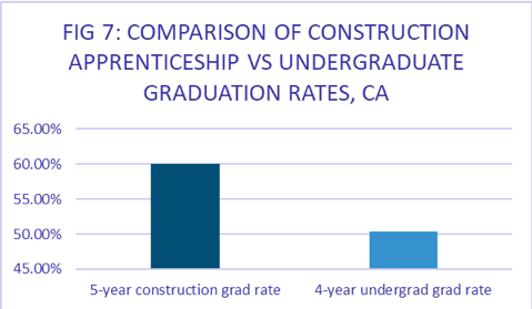 | The data reveal that construction apprenticeships provide substantially more training hours for participants than California bachelors degree programs, deliver substantially higher graduation rates, and produce average exit wages on par with college graduates. “When you consider that Registered Apprenticeships are tuition-free career training opportunities, and college degrees can carry tuition costs well into the six figures, these differences really are especially significant,” Petrucci added. “Registered apprenticeships in construction are providing viable pathways for workers seeking to access good paying careers within in-demand industries, without accumulating a mountain of debt.” | ||